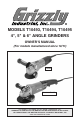 MODELS T10493, T10494, T10495 4", 5" & 6" ANGLE GRINDERS OWNER'S MANUAL (For models manufactured since 10/11) T10493 T10494 & T10495 Copyright © October, 2011 By Grizzly Industrial, Inc. Warning: No portion of this manual may be reproduced in any shape or form without the written approval of Grizzly Industrial, inc.