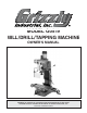MODEL G0519 MILL/DRILL/TAPPING MACHINE OWNER'S MANUAL 8DENG><=I CDK:B7:G! '%%- 7N OOAN >C9JHIG>6A! >C8# WARNING: NO PORTION OF THIS MANUAL MAY BE REPRODUCED IN ANY SHAPE OR FORM WITHOUT THE WRITTEN APPROVAL OF GRIZZLY INDUSTRIAL, INC.