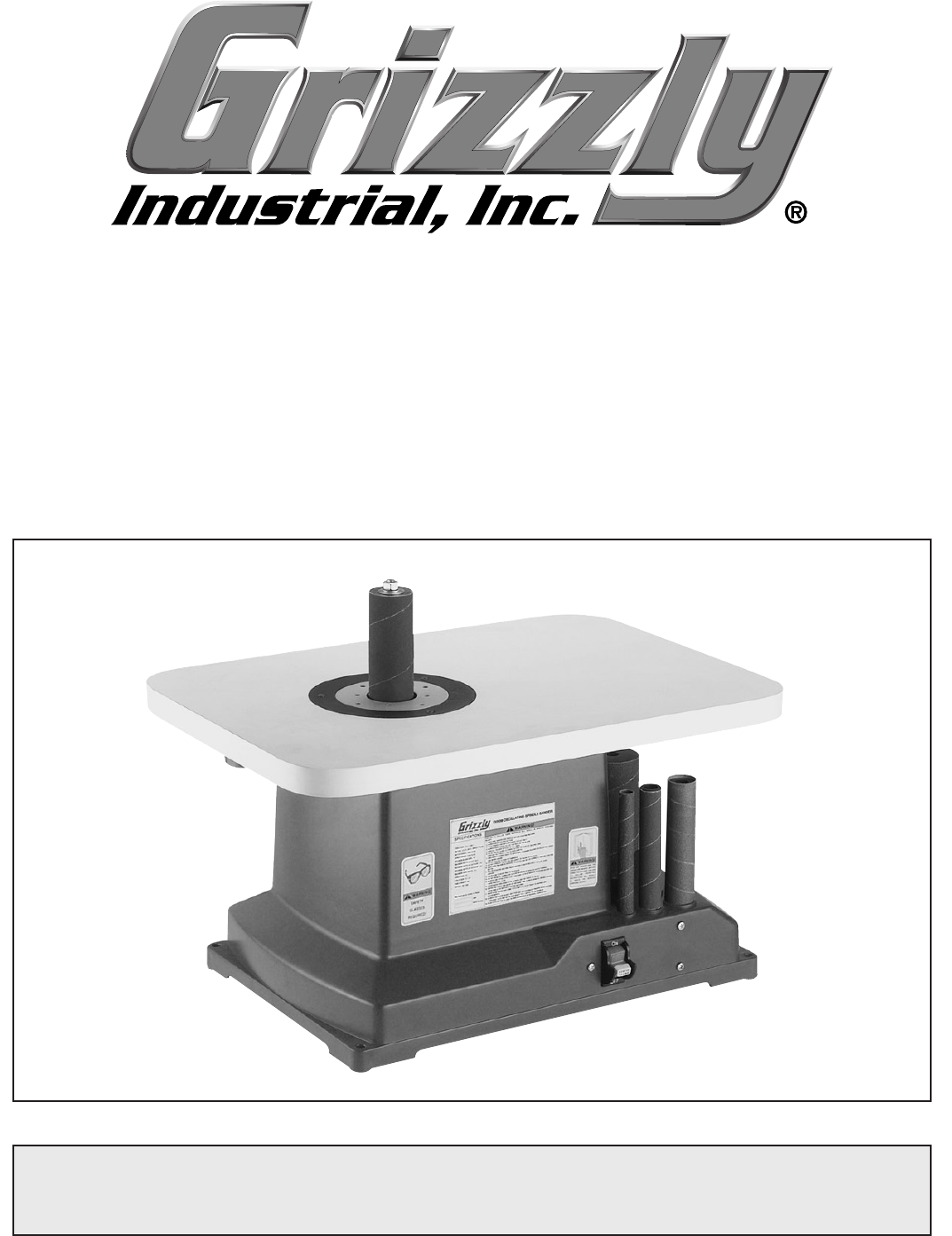MODEL G0538 OSCILLATING SPINDLE SANDER OWNER'S MANUAL COPYRIGHT © NOVEMBER, 2005 BY GRIZZLY INDUSTRIAL, INC. WARNING: NO PORTION OF THIS MANUAL MAY BE REPRODUCED IN ANY SHAPE OR FORM WITHOUT THE WRITTEN APPROVAL OF GRIZZLY INDUSTRIAL, INC.