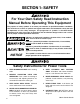 SECTION 1: SAFETY For Your Own Safety Read Instruction Manual Before Operating This Equipment The purpose of safety symbols is to attract your attention to possible hazardous conditions. This manual uses a series of symbols and signal words which are intended to convey the level of importance of the safety messages. The progression of symbols is described below. Remember that safety messages by themselves do not eliminate danger and are not a substitute for proper accident prevention measures.