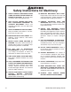 Safety Instructions for Machinery 7. NEVER OPERATE MACHINERY WHEN TIRED, OR UNDER THE INFLUENCE OF DRUGS OR ALCOHOL. Be mentally alert at all times when running machinery. 16. MAINTAIN MACHINERY WITH CARE. Keep blades sharp and clean for best and safest performance. Follow instructions for lubricating and changing accessories. 8. ONLY ALLOW TRAINED AND PROPERLY SUPERVISED PERSONNEL TO OPERATE MACHINERY. Make sure operation instructions are safe and clearly understood. 17.