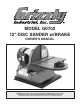 MODEL G0702 12" DISC SANDER w/BRAKE OWNER'S MANUAL 8DENG><=I H:EI:B7:G! '%%. 7N OOAN >C9JHIG>6A! >C8# WARNING: NO PORTION OF THIS MANUAL MAY BE REPRODUCED IN ANY SHAPE OR FORM WITHOUT THE WRITTEN APPROVAL OF GRIZZLY INDUSTRIAL, INC. ;DG BD9:AH B6CJ;68IJG:9 H>C8: -$%.