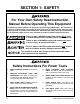 SECTION 1: SAFETY For Your Own Safety Read Instruction Manual Before Operating This Equipment The purpose of safety symbols is to attract your attention to possible dangers. This manual uses a series of symbols which are intended to convey the level of criticality of the safety message. The progression of symbols is described below. Remember that safety messages by themselves do not eliminate danger and are not a substitute for proper accident prevention measures.