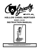 Chuck Extender The use of the chuck extender is only necessary if the chisel is too short to reach the chuck. The extender will lower the chuck approximately 1''. To install the extender: 1. Remove the chuck cover on the mortiser’s head by loosening the knobs at the front and side of the cover plate. 2. Hold the motor shaft in place with a 10mm wrench. Insert a phillips screwdriver into the chuck key hole and unscrew the chuck in a clockwise direction. Figure 10. G3183 Hollow Chisel Mortiser Figure 10.