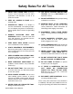 Safety Rules For All Tools 1. KNOW YOUR POWER TOOL. Read the owner’s manual carefully. Learn the tool’s applications and limitations, as well as its particular hazards. 2. KEEP ALL GUARDS IN PLACE and in working order. 3. GROUND ALL TOOLS. If an adapter is used to accommodate a two-prong receptacle, the adapter plug must be attached to a known ground. Never remove the grounding prong. 4. 5. 6. 7. REMOVE ADJUSTING KEYS AND WRENCHES.