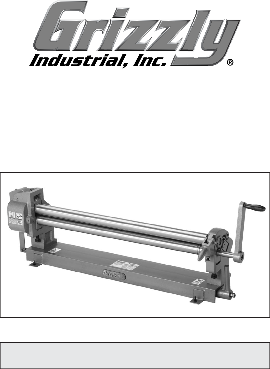 MODEL G5770 36" SLIP ROLL 22 GAUGE OWNER'S MANUAL 8DENG><=I B6N! '%%- 7N OOAN >C9JHIG>6A! >C8# G:K>H:9 ?6CJ6GN! '%%. ?7 WARNING: NO PORTION OF THIS MANUAL MAY BE REPRODUCED IN ANY SHAPE OR FORM WITHOUT THE WRITTEN APPROVAL OF GRIZZLY INDUSTRIAL, INC.
