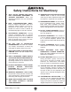 Safety Instructions for Machinery 7. ONLY ALLOW TRAINED AND PROPERLY SUPERVISED PERSONNEL TO OPERATE MACHINERY. Make sure operation instructions are safe and clearly understood. 8. KEEP CHILDREN/VISITORS AWAY. Keep all children and visitors away from machinery. When machine is not in use, disconnect it from power, lock it out, or disable the switch to make it difficult for unauthorized people to start the machine. 9. UNATTENDED OPERATION.