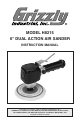 MODEL H8215 6" DUAL ACTION AIR SANDER INSTRUCTION MANUAL COPYRIGHT © AUGUST, 2007 BY GRIZZLY INDUSTRIAL, INC. WARNING: NO PORTION OF THIS MANUAL MAY BE REPRODUCED IN ANY SHAPE OR FORM WITHOUT THE WRITTEN APPROVAL OF GRIZZLY INDUSTRIAL, INC.