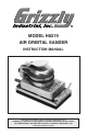 MODEL H8219 AIR ORBITAL SANDER INSTRUCTION MANUAL COPYRIGHT © AUGUST, 2007 BY GRIZZLY INDUSTRIAL, INC. WARNING: NO PORTION OF THIS MANUAL MAY BE REPRODUCED IN ANY SHAPE OR FORM WITHOUT THE WRITTEN APPROVAL OF GRIZZLY INDUSTRIAL, INC.