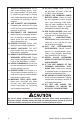 7. AVOID ENTANGLEMENTS. Do not wear loose clothing, gloves, neckties, rings, bracelets, or other jewelry, which may get caught in moving parts, when operating this tool. Wear a protective hair covering to contain long hair. 8. USE CORRECT AIR PRESSURE. Exceeding the maximum PSI rating of this tool may cause unpredictable operation or bursting. 9. DISCONNECT AIR PRESSURE before servicing, changing accessories, or moving to another location. Never leave this tool unattended when connected to air. 10.