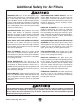 Additional Safety for Air Filters INTENDED USE. I]^h V^g [^aiZg YZh^\cZY id XVe" ijgZ Yjhi [gdb VbW^Zci V^g ^c V lddYldg`^c\ h]de [dg V h]dgi i^bZ V[iZg Xjii^c\ dg hVcY^c\ deZgV" i^dch# 9D CDI jhZ i]^h V^g [^aiZg id XdaaZXi eVgi^XaZh d[ h^a^XV! bZiVa! aZVY eV^ci! VhWZhidh! dg ]VoVgYdjh WVXiZg^jb# 9D CDI Vaadl i]^h [^aiZg id XdaaZXi a^f" j^Yh! XdbWjhiVWaZ [jbZh! cdg Wjgc^c\ dg hbd`^c\ bViZg^Va! dg idm^X [jbZh# DISCONNECTING POWER SUPPLY.