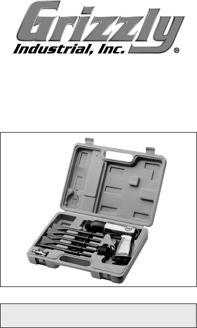MODEL H8210 10 PIECE AIR HAMMER KIT INSTRUCTION MANUAL COPYRIGHT © AUGUST, 2007 BY GRIZZLY INDUSTRIAL, INC. WARNING: NO PORTION OF THIS MANUAL MAY BE REPRODUCED IN ANY SHAPE OR FORM WITHOUT THE WRITTEN APPROVAL OF GRIZZLY INDUSTRIAL, INC.