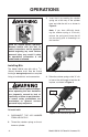 OPERATIONS 3. Insert the bit by bending the retainer spring out of the way of the cylinder bore and slide the bit in as shown in Figure 2. Note: If you have difficultly bending the retainer spring to fit the bit, remove the spring and insert the bit into the spring prior to threading it on the hammer. Read the manual before operation. Become familiar with this tool, its safety instructions, and its operation before beginning any work.