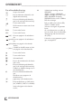 OVERZICHT-------------------------------------------------------------------------------------------------------------------------------De afstandsbediening v Vergroot het beeld. y ist verschillende ondertitels (in de K digitale televisiemodus); d Kiest verschillende geluidsinstellingen (in de analoge televisiemodus); Toets zonder functie. ? eeft nummer en naam van de zenG der weer. ECO Toets zonder functie. CEC Toets zonder functie. (red) Kiest een pagina in de teletekstmodus.