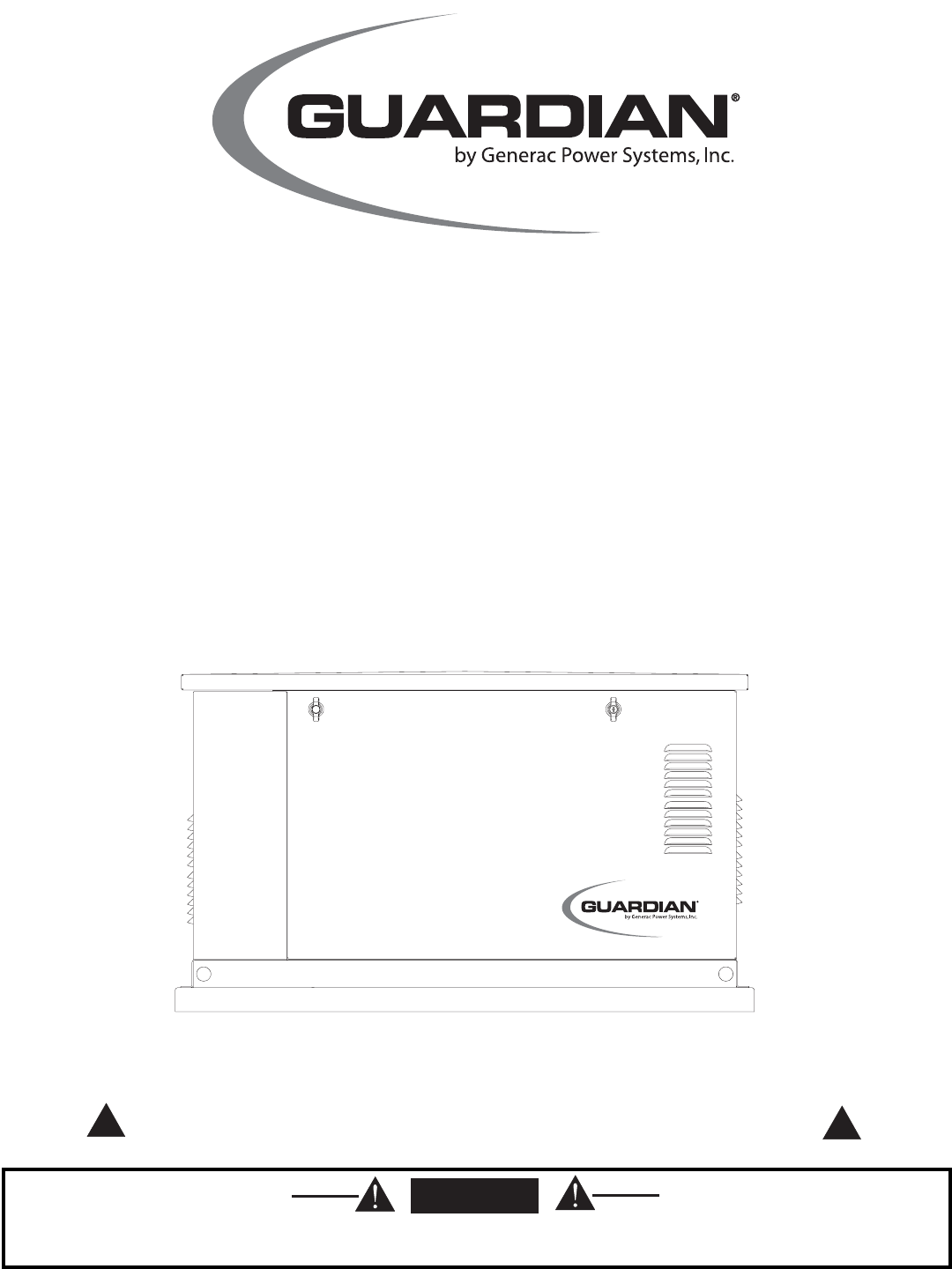 INTRODUCTION Thank you for purchasing this Guardian model by Generac Power Systems Inc.. This model is a compact, high performance, air-cooled, engine-driven generator designed to automatically supply electrical power to operate critical loads during a utility power failure. This unit is factory installed in an all-weather, metal enclosure that is intended exclusively for outdoor installation. This generator will operate using either vapor withdrawn liquid propane (LP) or natural gas (NG).