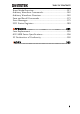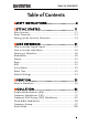 TABLE OF CONTENTS Table of Contents SAFETY INSTRUCTIONS .................................. 6 GETTING STARTED ........................................ 11 Main Features ................................................................... 11 Panel Overview .................................................................. 13 Setting up the Function Generator .................................... 19 QUICK REFERENCE ....................................... 21 How to use the Digital Inputs ........................