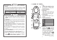 ( 1 ) NAME OF PARTS Warning j Jaw 4 To prevent damage to the meter or electrical shock! According to the safety standard, the maximum voltage input power is classified as follows to protect the users against transient impulse voltage in power lines. 2 1 Over-voltage Category (CAT.) Maximum input voltage CAT II 600V 3 Caution 1 Do not use the meter near equipment emitting noise or under an environment with sudden temperature change; otherwise, unstable or erroneous reading will appear.