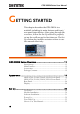 GETTING STARTED Package Contents Check the contents before using the GDS-2000A. Opening the Box Contents Main unit Probe set GTP-070A-4 for GDS-2072A/ GDS-2074A GTP-150A-2 for GDS-2102A / GDS-2104A GTP-250A-2 for GDS-2202A / GDS-2204A GTP-350A-2 for GDS-2302A / GDS-2304A Note Power cord Certificate of Traceable Calibration User Manual CD Quick Start Guide The programming manual and USB driver are downloadable from the GW Instek website. Visit www.gwinstek.