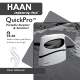 Introductio n Instant steam. Expert results. Congratulations on purchasing the HAAN® TS-30 QuickPro™ Portable Steamer & Sanitizer. Lightweight and compact, the QuickPro™ delivers instant steam to quickly smooth away wrinkles with dry cleaner results before you head out the door. The sleek, slim QuickPro™ fits into a suitcase to keep up with the fast-paced traveler, too. And with 212°F steam that kills up to 99.9% of E.