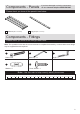 Components - Panels If you have damaged or missing components, call the Customer Helpline: 08456 400 800 Please check you have all the panels listed below Shelf x5 (83.7 x 23.6 cm) 1 2 Leg x4 (89.1 x 4.5 cm) Components - Fittings Please check you have all the fittings listed below Note: The quantities below are the correct amount to complete the assembly. In some cases more fittings may be supplied than are required.