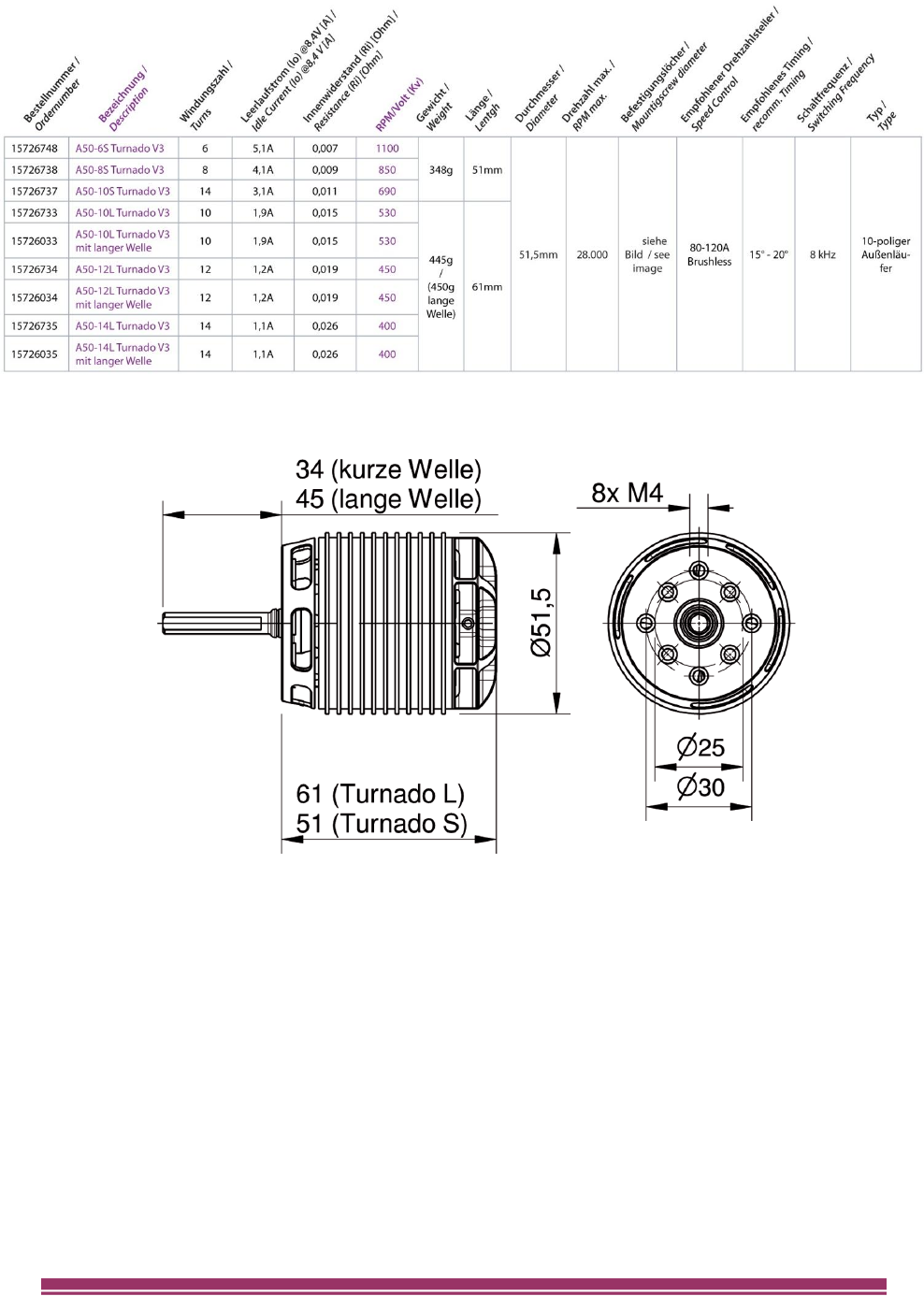 Anleitung / Manual Hacker A50 Turnado Brushless Motor