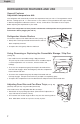 English INSTALLING YOUR REFRIGERATOR Unpacking 1. Remove all packaging material. This includes the foam base and all adhesive tape holding the accessories inside and outside. 2. Inspect and remove any remains of packing, tape or printed materials before powering on. Installion Limitations • Do not install in any location not properly insulated or heated e.g. garage etc. Your unit was not designed to operate in temperature settings below 55˚ Fahrenheit.