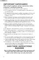 English IMPORTANT SAFEGUARDS When using this applaince, always exercise basic safety precautions, including the following: 1) Read all of the instructions before using this appliance. 2) U se this appliance only for its intended purposes as described in this use and care guide. 3) T his appliance must be properly installed in accordance with the installation instruction before it is used. See grounding instructions in the installation section.