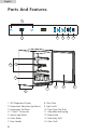 English Parts And Features 2 1 14 3 4 5 6 13 12 11 10 9 8 1. LED Temperature Dispay 8. Glass Door 2. Temperature Adjustment (up/down) 9. Light Switch 3. Temperature Set Button 10. Front Cover (Toe Kick) 4. °C and °F Conversion 11. Adjustable Leveling Leg 5. Interior Light Button 12. Bottom Rack 6. Power Button 13. Fold Away Shelf 7. Door Handle 14.