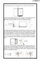 English Anti-tip bracket Installation 1. Take off upper hinge cover with upwards motion. Refer to illustrations below: 2. Take the anti-tip bracket and screws from the accessory bag. Tighten the anti-tip bracket on the top of the product with screws as follows in the illustration. Note: Follow instructions properly or you may do damage to product. 3. Pull glass door open and attach the anti-tip bracket to counter by screw as seen below.