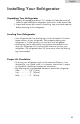 English Installing Your Refrigerator Unpacking Your Refrigerator 1. Remove all packaging material. This includes the foam base and all adhesive tape holding the refrigerator accessories inside and outside. 2. Inspect and remove any remains of packing, tape or printed materials before powering on the refrigerator. Leveling Your Refrigerator •Y our refrigerator has two leveling legs which are located in the front bottom corners of your refrigerator.