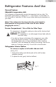 English Troubleshooting Refrigerator does not operate: • Check if thermostat control is not in the “0” position. • Check if refrigerator is plugged in. • Check if there is power at the AC outlet, by checking the circuit breaker. Food temperature appears too warm: • Frequent door openings. • Allow time for recently added warm food to reach fresh food temperature. • Check gaskets for proper seal. • Adjust temperature control to colder setting.