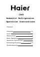 C60 Domestic Refrigerator Operation Instructions Contents Cautions 1-2 Parts 3 Observations 4 Basic Operation 5 Operation Instructions 6 Defrosting/Cleaning Troubleshooting 7-8 9
