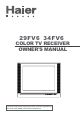 29FV6 34FV6 COLOR TV RECEIVER OWNER'S MANUAL Please READ this manual carefully before operating the unit, and keep it for future reference.