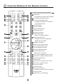 Function Buttons of the Remote Control Function buttons of the remote control POWER TV/AV MUTE Mute button To eliminate the sound of the programs SCAN CALL/HELP HDM STILL DC standby and power button TV and AV exchange button A changeover between TV and other input signals like AV I/II select button Picture still button Screen call/help button HDM select button SWAP Program scan button Direct select button S.STD P.
