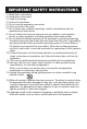 IMPORTANT SAFETY INSTRUCTIONS 1) 2) 3) 4) 5) 6) 7) Read these instructions. Keep these instructions. Heed all warnings. Follow all instructions. Do not use this apparatus near water. Clean only with a dry cloth. Do not block any ventilation openings. Install in accordance with the manufacturer's instructions. 8) Do not install near any hear sources such as radiators, heat registers, stoves, or other apparatus (including amplifiers) that produce heat.