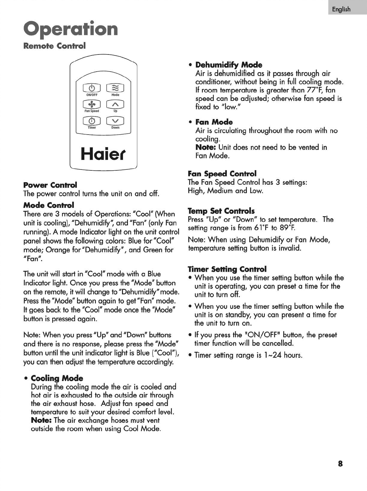8,000 BTU 250 sq. ft. Cool Only Portable Air Conditioner with 70 Pint/Day Dehumidification Mode and LCD Remote Control