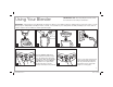 Using Your Blender BEFORE FIRST USE: After unpacking the blender, follow the instructions in “Cleaning Your Blender.” IMPORTANT: Your blender jar and cutting blade assembly are subject to wear during normal use. Always inspect jar for nicks, chips, or cracks. Always inspect cutting blade assembly for broken, cracked, or loose blades. If jar or cutting blade assembly is damaged, do not use. Call our toll-free customer service number to obtain replacement parts. 1 2 3 4 Plug blender into outlet.