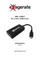 Introduction The new Exagerate MHL-HDMI cable adapter allows you to easily connect a smartphone, tablet PC or other MHL enabled device to an HDMI TV using an HDMI cable*. Installation 1. With the power to the TV off, connect an HDMI cable from the HDMI port on the MHL adapter to your HDMI TV or other HDMI device. Note: Supplying power to the connected MHL source device will allow the source device to remain charged while being used.