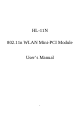 2. Hardware Installation The following sections in this chapter describe how to install HL-11N Module 2.1. Installation Overview HL-11N wireless module is design for Wireless Gateway only. 2.2. Safety Recommendations The safety guidelines are as follows: λ Keep the board area clear and dust-free before, during, and after installation. λ Keep tools away from walk areas where you and others could fall over them.