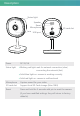 Description Status light Speaker Reset Microphone SD card slot Lens USB port Power DC 5V/1A Status light Blinking red light: wait for network connection (slow) connecting the network (fast) Solid blue light on: camera is working correctly Solid red light on: camera is malfunctional Microphone Capture sound for your video SD card slot Support local SD Card storage (Max.