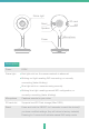 Status light SD card slot Reset Speaker Power Microphone Description Power DC5V Status light Red light solid on: the camera network is abnormal Blinking red light: awaiting WiFi connecting, or currently connecting (faster blinking) Blue light solid on: camera running correctly Blinking blue light: awaiting manual WiFi configuration, or currently connecting (faster blinking) Microphone Captures sounds for your video SD card slot Supports local SD Card storage (Max.
