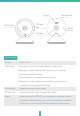 Power Microphone USB SD card slot Status light Reset Speaker Description Power DC5V±10% Status light Red light solid on: the camera network is abnormal Blinking red light: awaiting WiFi connecting, or currently connecting (faster blinking) Blue light solid on: camera running correctly Blinking blue light: awaiting manual WiFi configuration, or currently connecting (faster blinking) Microphone Captures sounds for your video SD card slot Supports local SD Card storage (Max.
