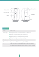 Microphone Status light SD card slot SD RESET Speaker Reset Power Description Power DC5V±10% Status light Red light solid on: the camera network is abnormal Blinking red light: awaiting WiFi connecting Blue light solid on: camera running correctly Blinking blue light: currently connecting Microphone Captures sounds for your video SD card slot Supports local SD Card storage (Max.