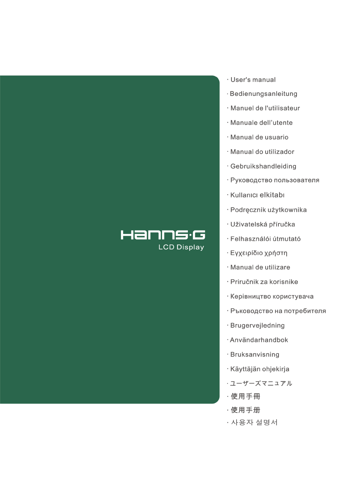 User’s Manual RECYCLING INFORMATION We, the Hanns.G care very much about our environment protection strategy and firmly believe that it helps us have healthier earth via appropriate treatment and recycling of industrial technology devices at the end-of-life. These devices contain recyclable materials, which can be re-decomposed and re-integrated into brand-new marvels. On the contrary, other material can be classified to hazardous and poisoned substances.