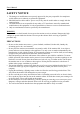 User’s Manual ERROR MESSAGE & POSSIBLE SOLUTIONS CABLE NOT CONNECTED : 1. Check that the signal-cable is properly connected, If the connector is loose, tighten the connector’s screws. 2. Check the signal-cable’s connection pins for damage. INPUT NOT SUPPORT : Your computer has been set to unsuitable display mode, set the computer to display mode given in the following table.