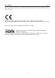 User’s Manual (HDMI INPUTS) Primary Video Format Timings MODE 1 2 3 4 5 6 7 RESOLUTION 640×480p @ 60Hz 720×480p @ 60Hz 1280×720p @ 60Hz 720×576p @ 50Hz 1280×720p @ 50Hz 1920×1080i @ 60Hz 1920×1080i @ 50Hz Secondary Video Format Timings MODE RESOLUTION 1 1920x1080p @ 25Hz 2 1920x1080p @ 30Hz 3 1920x1080p @ 50Hz 4 1920x1080p @ 60Hz ** We ensure that the monitor can be lighted under interlace signal mode, but we can not guarantee the image quality.
