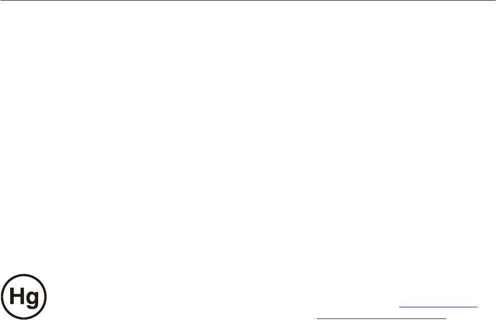 LAMP(S) INSIDE THIS PRODUCT CONTAIN MERCURY AND MUST BE RECYCLED OR
