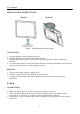 User’s Manual SETTING THE MONITOR ON THE WALL DISSEMBLING THE STAND BASE: 1. Disconnect all the cables and cords from the Monitor to prevent breakage. 2. Carefully place the Monitor face down on a soft and flat surface (blanket, foam, cloth, etc) to prevent any damage to the Monitor. 3. Squeeze the sides to release the retaining plastic tabs and pull the stand cover off. 4. Remove the four (4) screws so that the stand base can be removed. 5.