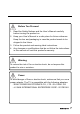 3 Description of Warning Symbols Warning Caution This symbol is used to remind users to pay attention to important descriptions regarding usage and maintenance (repair) or additional important information related to this product. This symbol is used to remind users to pay attention to the danger of electric shocks due to dangerous internal noninsulated components. Electric Power Notice Electric power may cause personal injury and mechanical damage if it is misused.