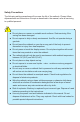Safety Precautions CA UT IO N The following safety precautions will increase the life of the netbook. Please follow allprecautions and instructions. Except as described in the manual, refer all servicing to qualified personal. ! ■ Do not place on uneven or unstable work surfaces. Seek servicing if the casing has been damaged. ■ Do not expose to dirty or dusty environment. And Do not operate during a gas leak.
